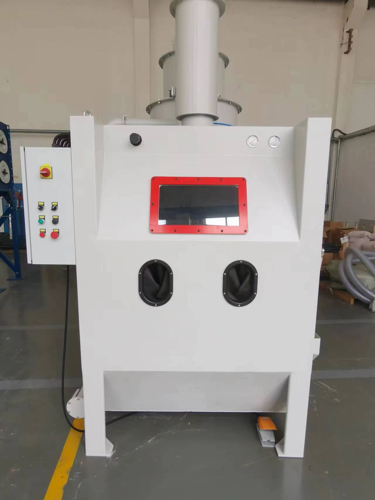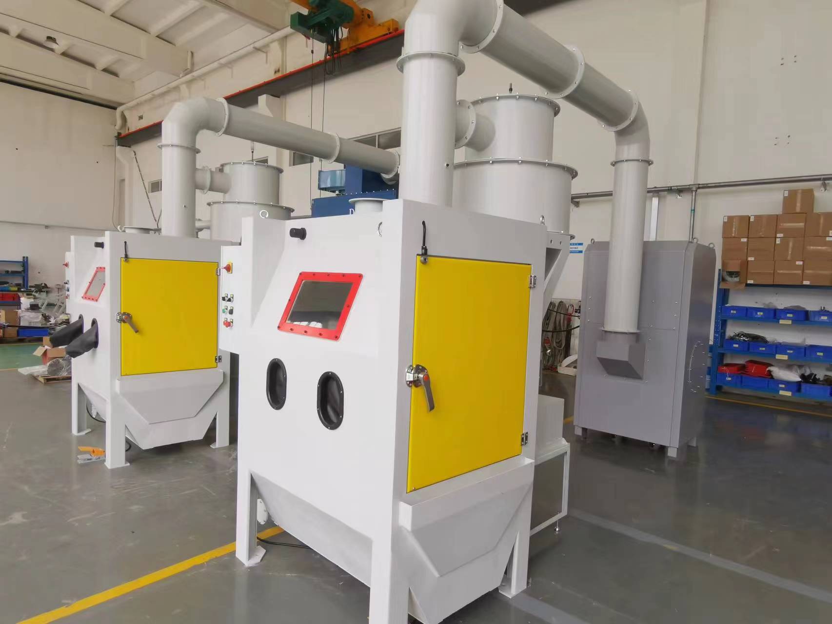 湖南株洲中國航發某航空企業訂購的2臺噴砂機發貨,一臺使用河砂配置美國唐納森除塵器,一臺使用剛玉砂配置威爾登除塵器,設備用途為航空零部件噴砂清理。