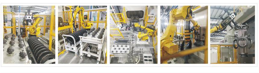 1) 機器人自動化噴拋丸一體機由回轉門轉臺式拋丸機、回轉門轉臺式噴丸機、智能化搬運系統組成;