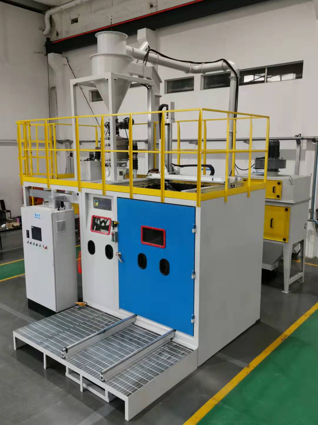 4)  丸料回收單元采用蜂窩地板模塊氣動回收,全面回收丸料和粉塵,具備環保節能的優點。